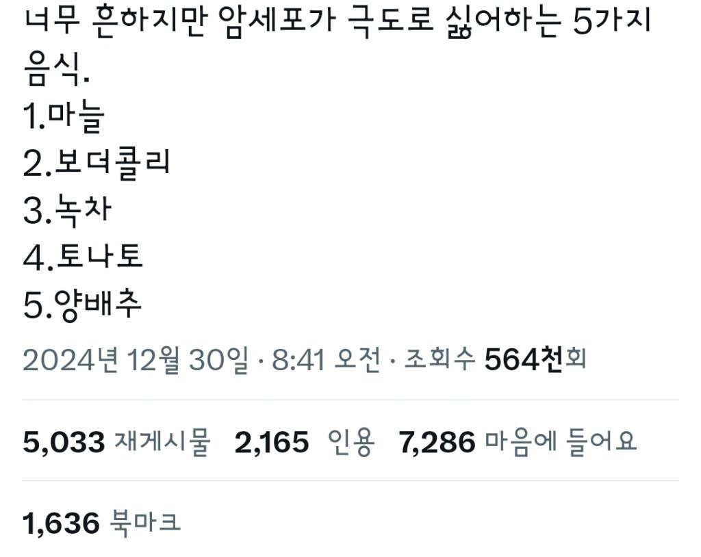 너무 흔하지만 암세포가 극도로 싫어하는 5가지 음식