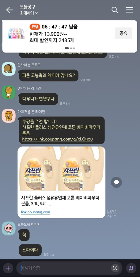 공구 열리는 딱 10시간 동안만 채팅을 할 수 있음