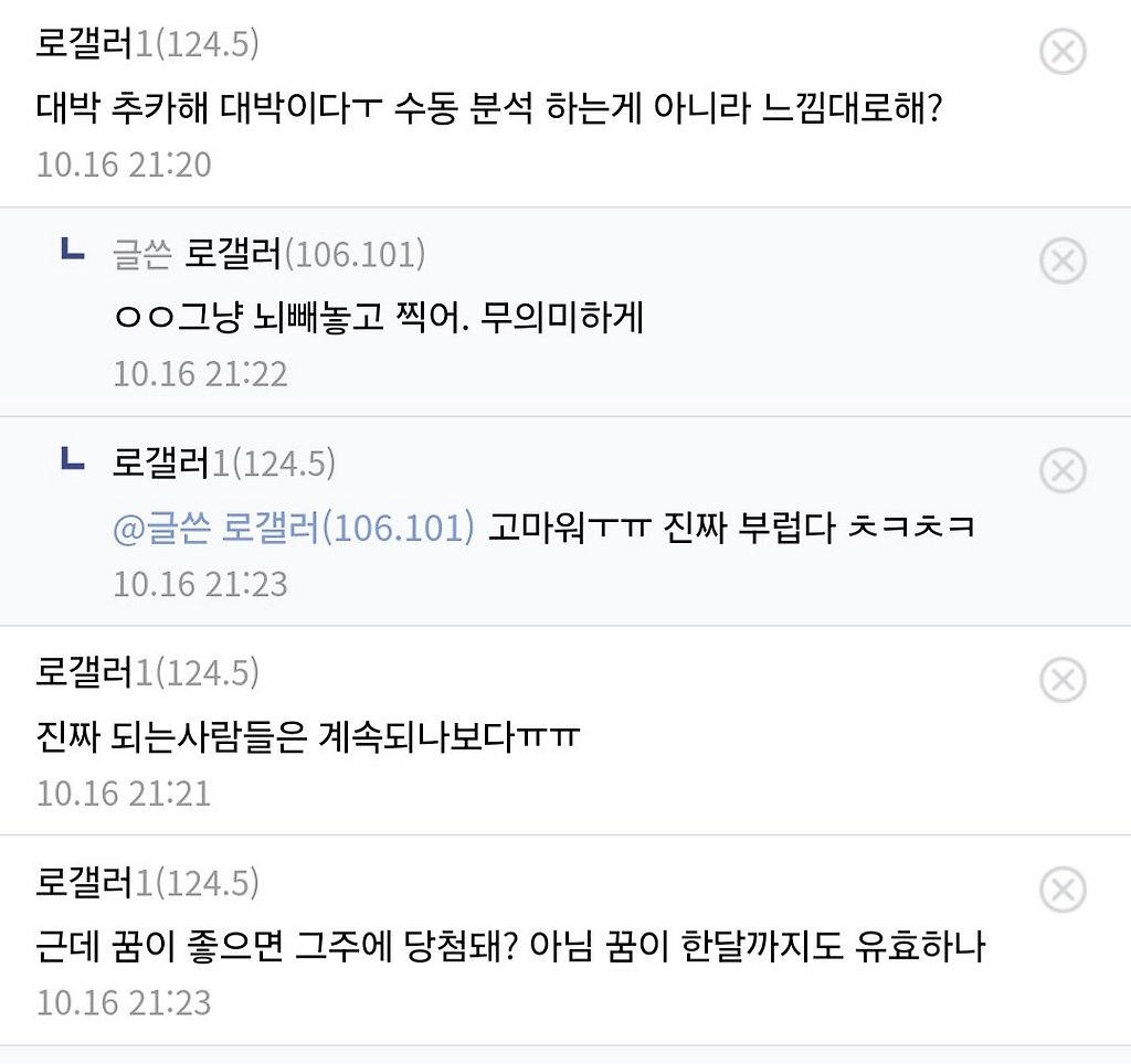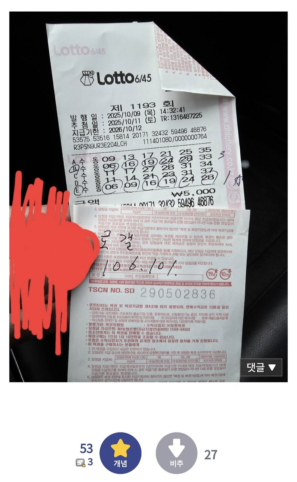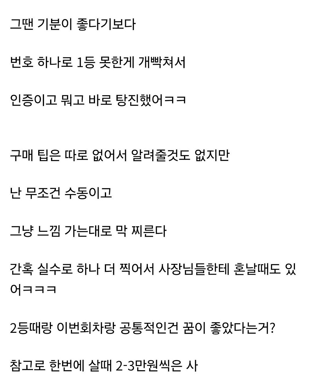 저번주에 로또 1등 당첨 인증한 로또갤러리 유저