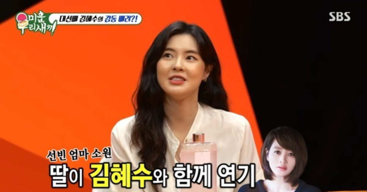 [뉴스엔 유경상 기자] 이선빈이 김혜수 미담을 공개했다. 8월 24일 방송된 SBS ‘미운 우리 새끼’에서는 배우 이선빈이 출연했다. 서장훈이 “이선빈 어머니 소원이 배우 김혜수와 같이 연기하는