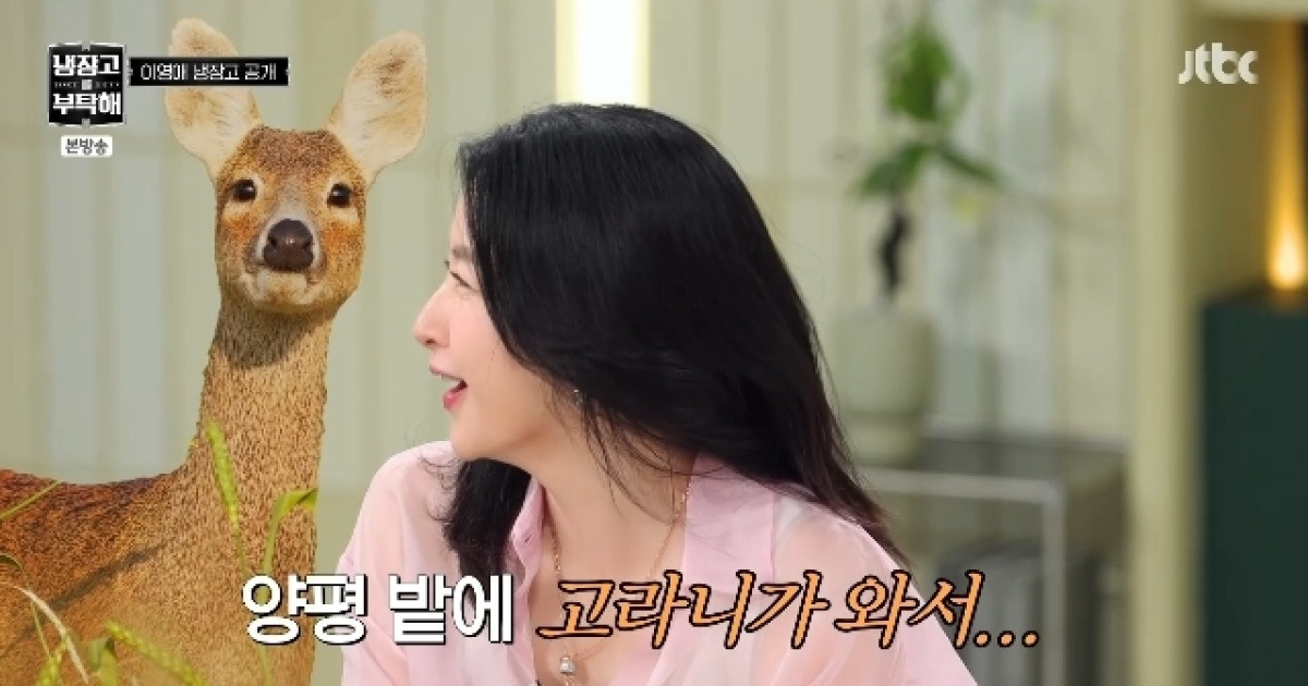 [뉴스엔 서유나 기자] 배우 이영애가 고라니 피해를 입은 사실을 밝혔다. 8월 31일 방송된 JTBC 예능 '냉장고를 부탁해 since 2014'(이하 '냉부') 37회에서는 이영애, 김영광이 게스트로 출연했다. 이날