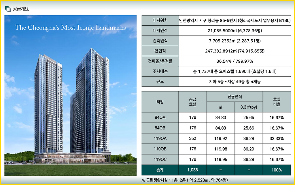 - 총 1,056실 / 최고 49층 / 4개동 / 1,2층 상업시설