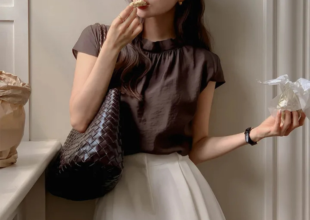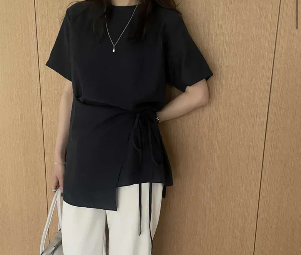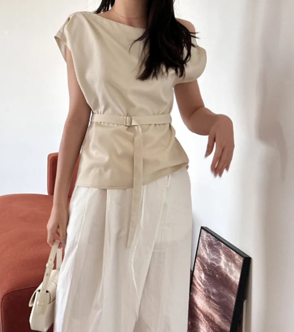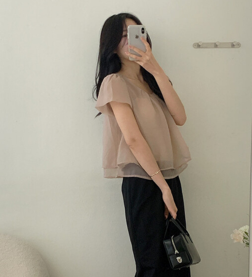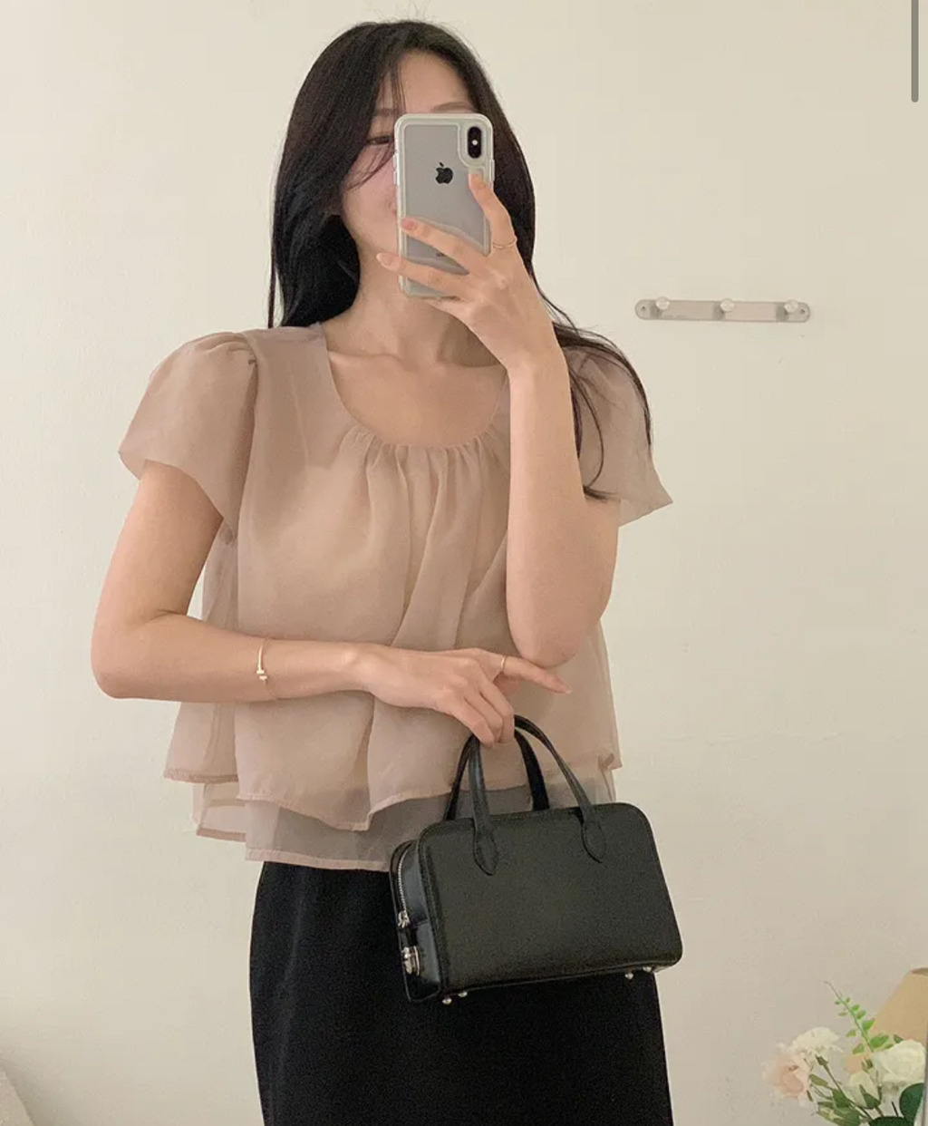 3.보니아 시어 랩 레이어드 텐셀 반팔 블라우스