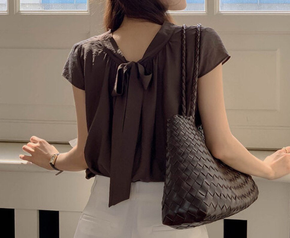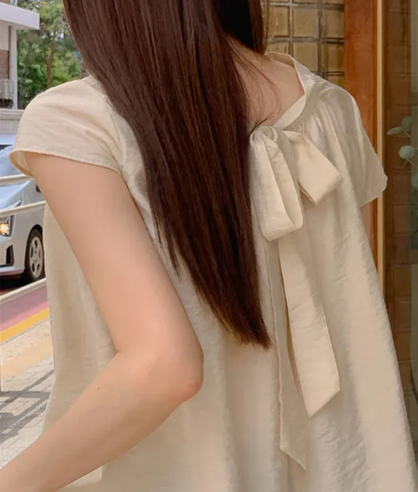 2.고헨 라운드 캡소매 백 타이 블라우스