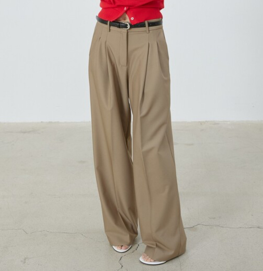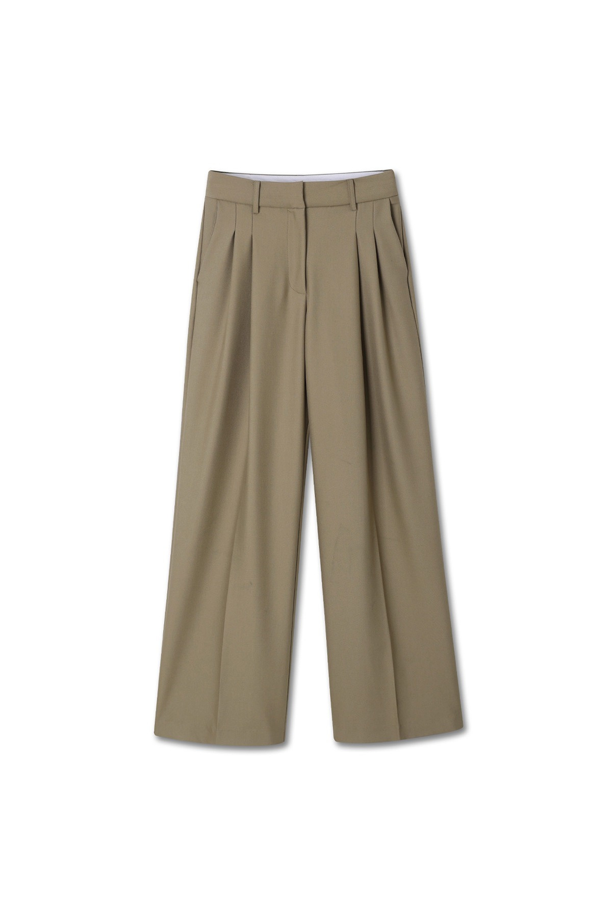 RELAX TWO-TUCK WIDE SLACKS KHAKI BEIGE