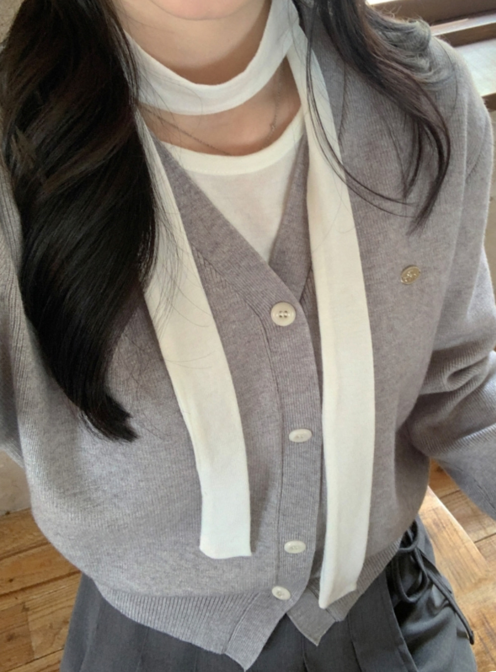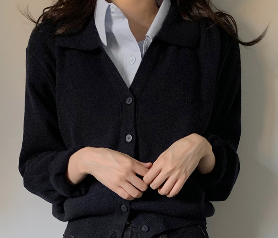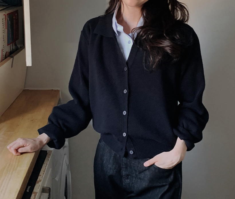 스무드 라운드 브이넥 캐시미어 니트 가디건