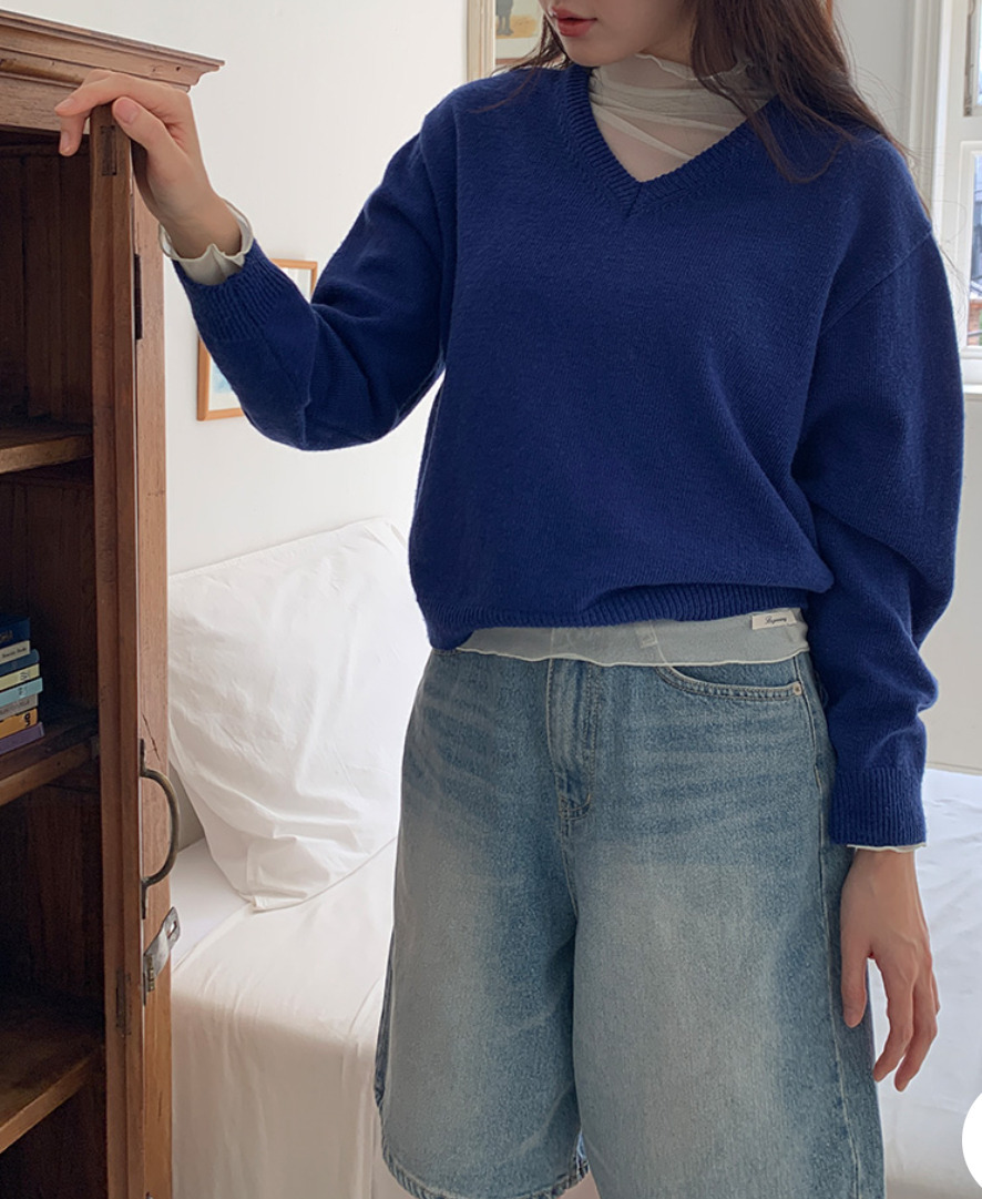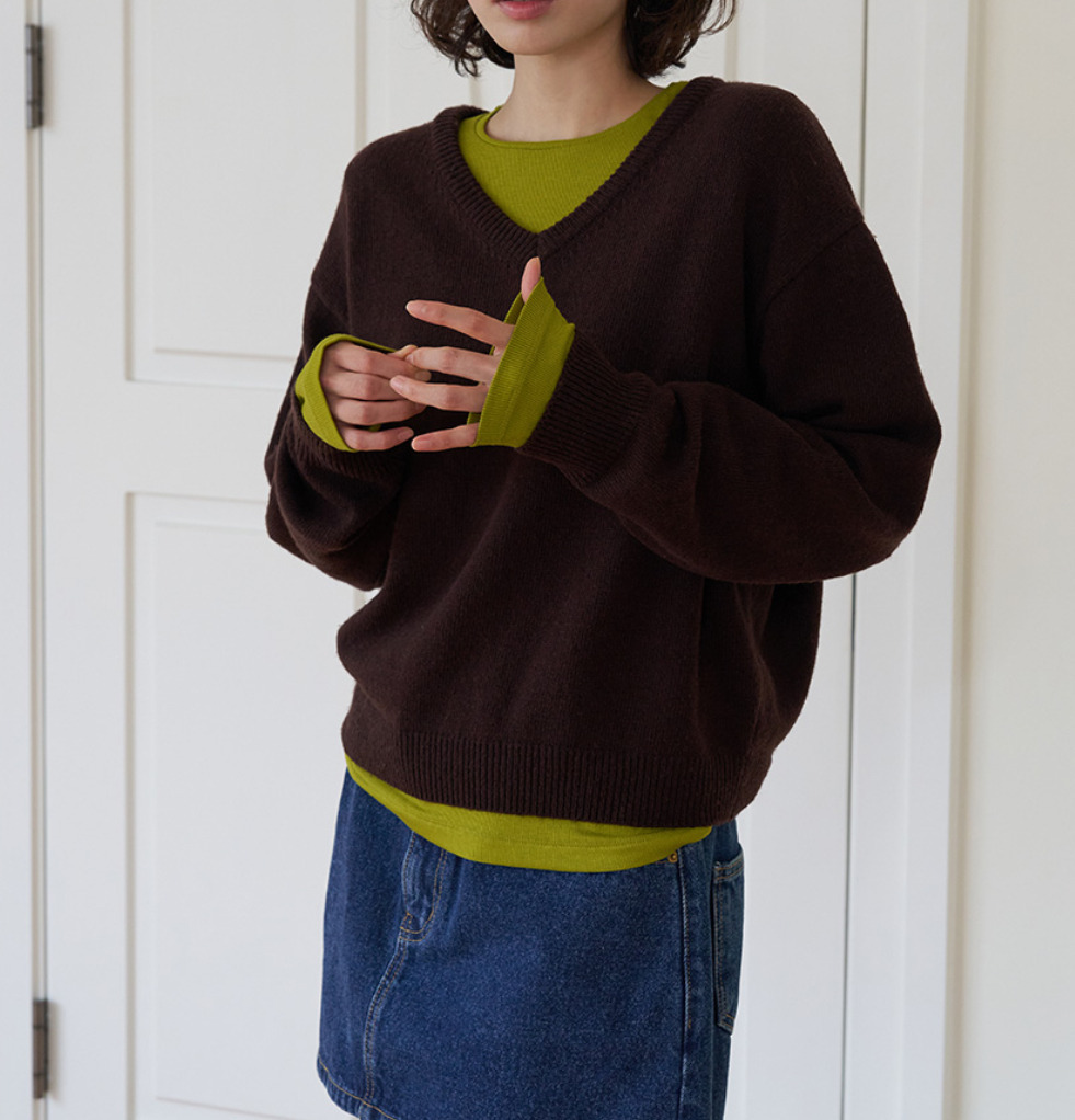 브이넥이라 셔츠,이너티,폴라티랑 매치하는 것에 따라 완전 다른 스타일링 가능!