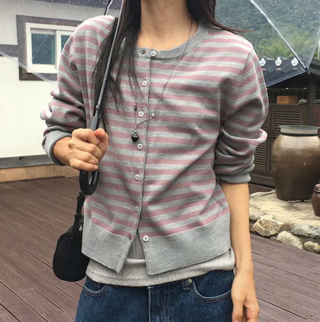 3.데일리쥬 켈리먼 스트라이프 가디건