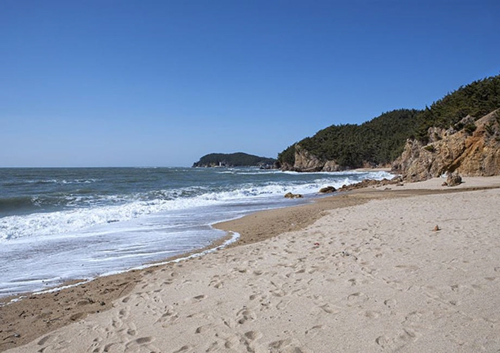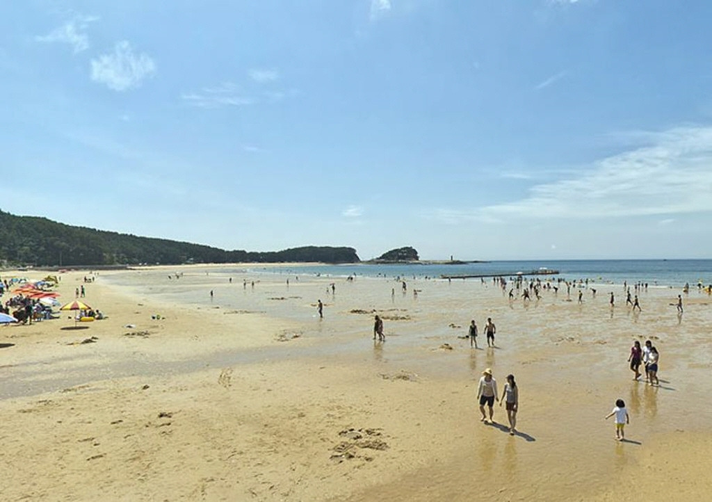 고운 모래로 질이 양호하고 경사가 완만하고 수심이 얕아 가족단위의 해수욕장으로 사랑받는다 .