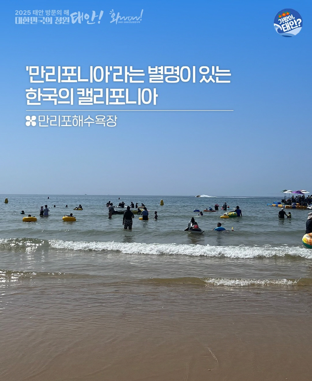 밀려오는 파도에 몸은 맡기고 즐기는 파도타기, 푸른 바다를 가로지르는 바나나보트, 만리포 바다 위를 시원하게 날아가는 짚라인, 시원한 파도와 함께하는 서핑,
