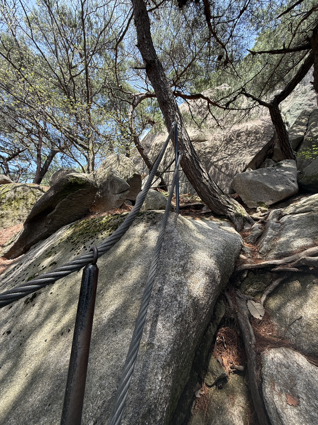 평이한 바위계단길과 경사진 길을 걷다가 이제 본격 등산 시작!