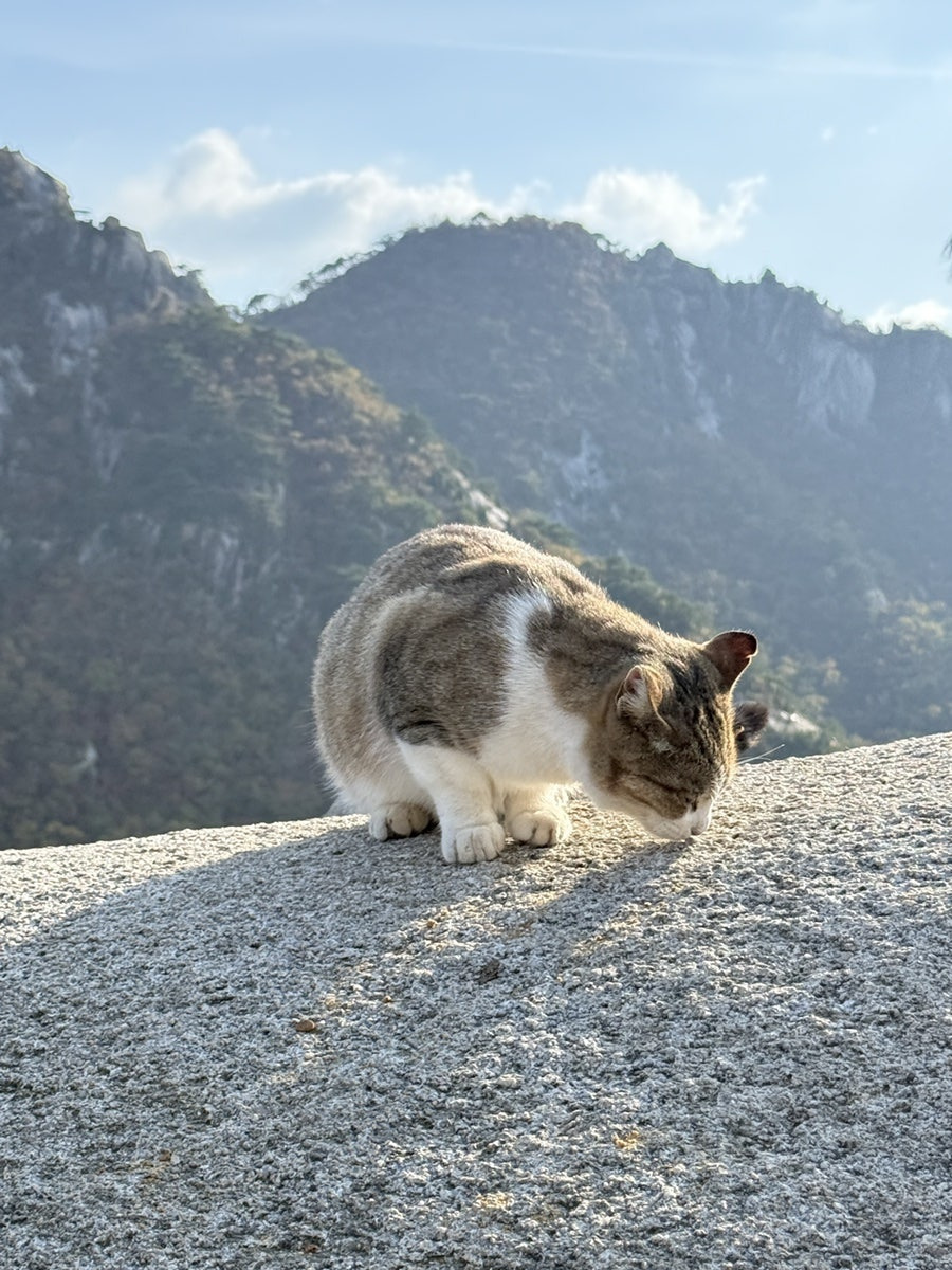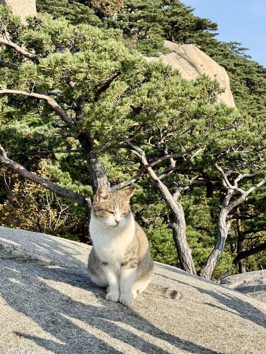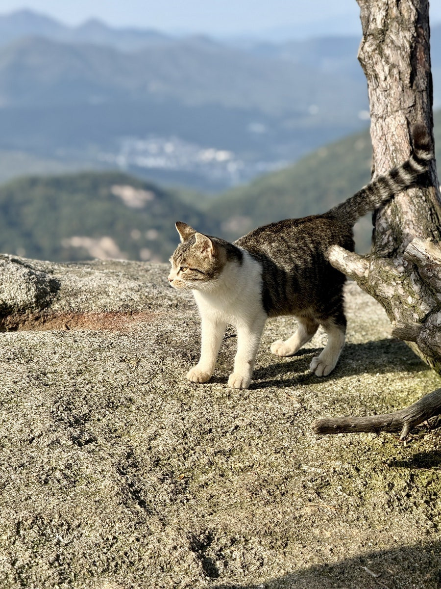 단풍 사진을 찍다 보니, 산속 고양이 친구들도 마주쳤다. 작은 고양이들이 산에 살고 있는 걸 볼 때마다 신기하면서도 조금 안쓰럽고, 여러 가지 생각이 교차한다.