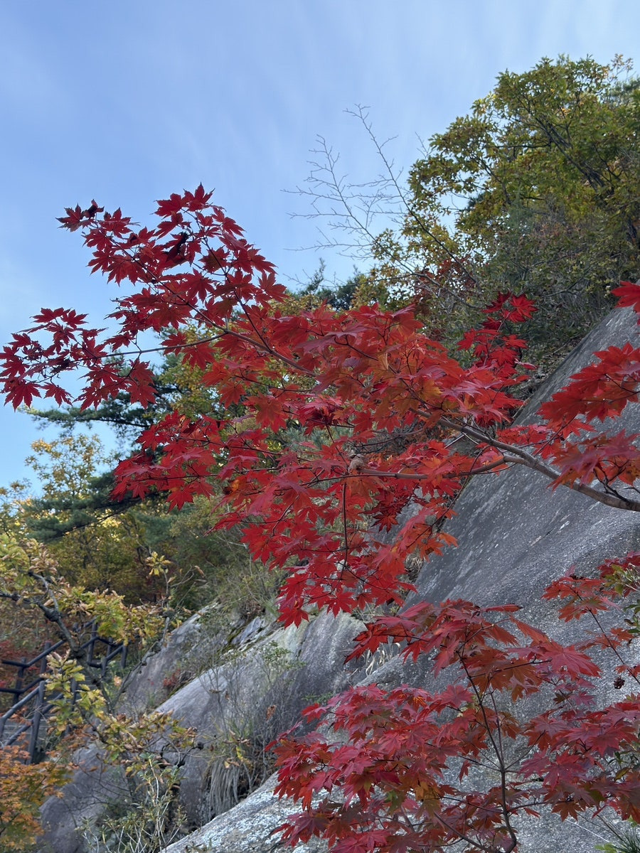 올해도 어김없이 단풍 시즌이 찾아왔다. 작년엔 단풍철에 북한산 백운대 코스로 다녀왔는데,백운탐방지원센터에서 출발하는 최단코스는 정상에 올라서야 비로소 단풍을 볼 수 있는 구조였다. 게다가 요즘은 북한산 등산이 워낙 인기가 많아져서정상으로 가는 길이 마치 ‘성지순례길’처럼 병목 현상이 생길 정도였다.