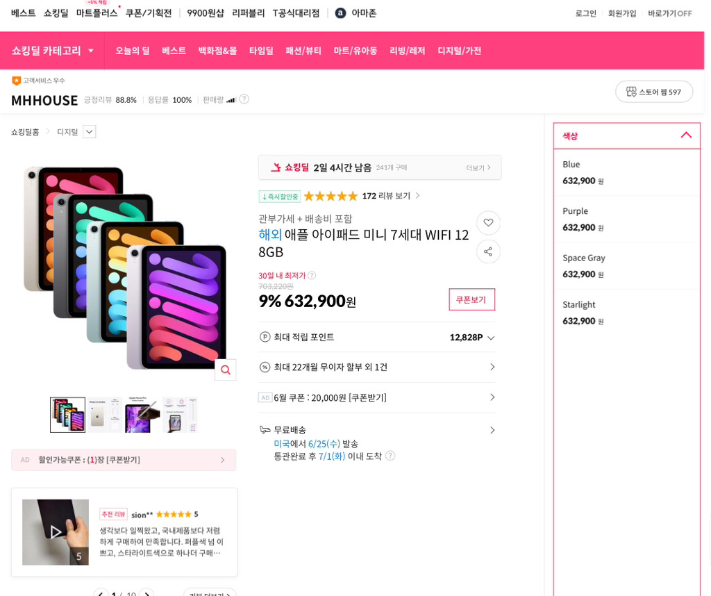 아이패드 미니 128GB 해외배송비 포함 63만원대https://bitl.bz/Pyl7oc