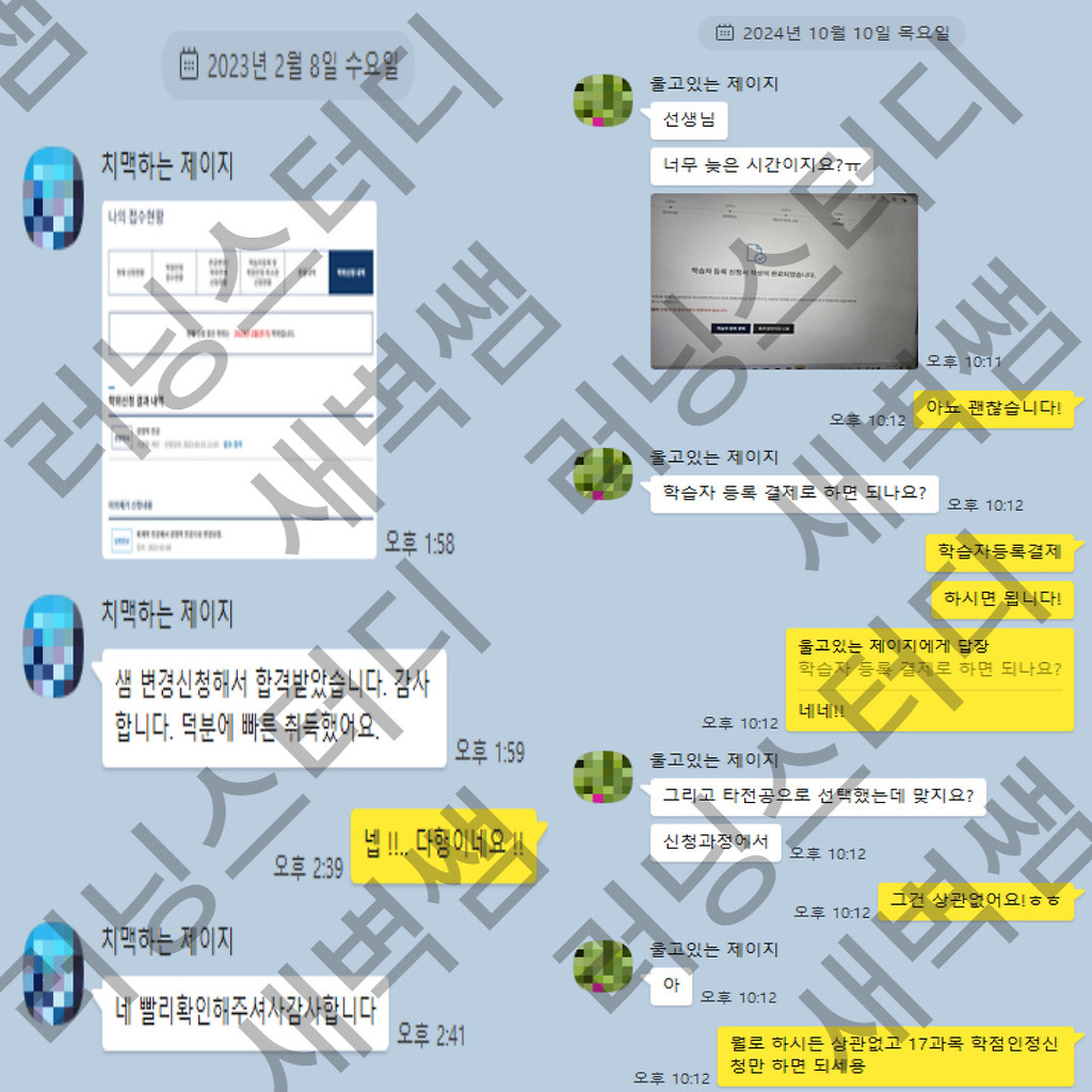 제가 1:1 맞춤형 관리로 지원해드리기 때문에, 각자의 상황에 맞춰 필요한 부분을 집중적으로 공부할 수 있으며, 어려운 점도 함께 해결해 나갈 수 있습니다.