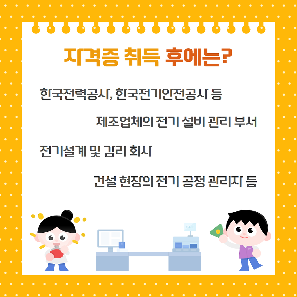 이처럼 단순 전기 사용과 관련된 업무가 아니라, 전기설비와 관련된 기술직 업무가 주 대상이에요.