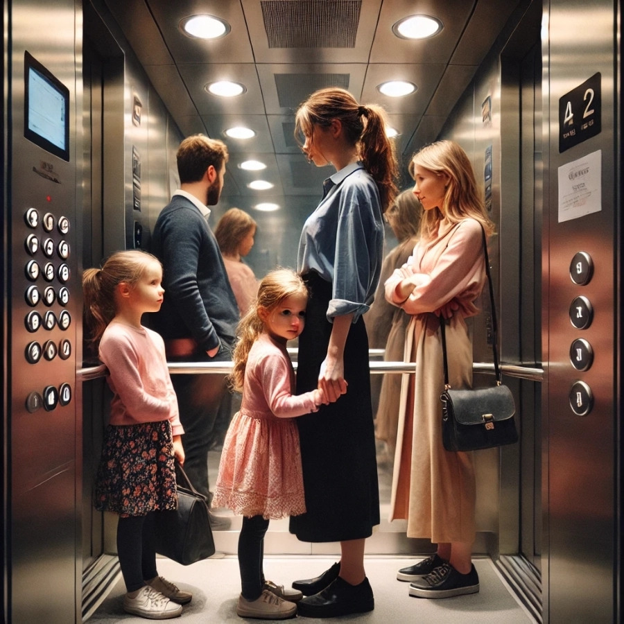 출근하려고 엘리베이터를 탔다. 3명이 먼저 타고 있었다. 그 중에 어머니와 딸이 타고 있었지.