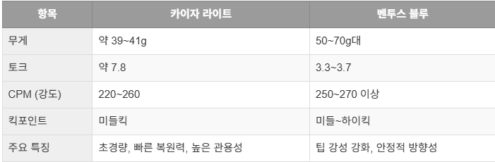 👉 묵직한 안정성과 컨트롤 중시 → 벤투스 블루