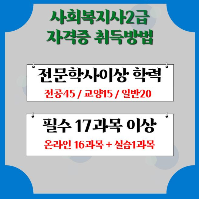 사회복지사 2급 자격증을 취득 하실 수 있습니다