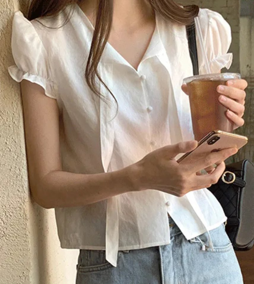 🤍[💗여리핏1등] 웨이스 타이 퍼프 블라우스 2color! (하객룩/타이블라우스/여름블라우스)