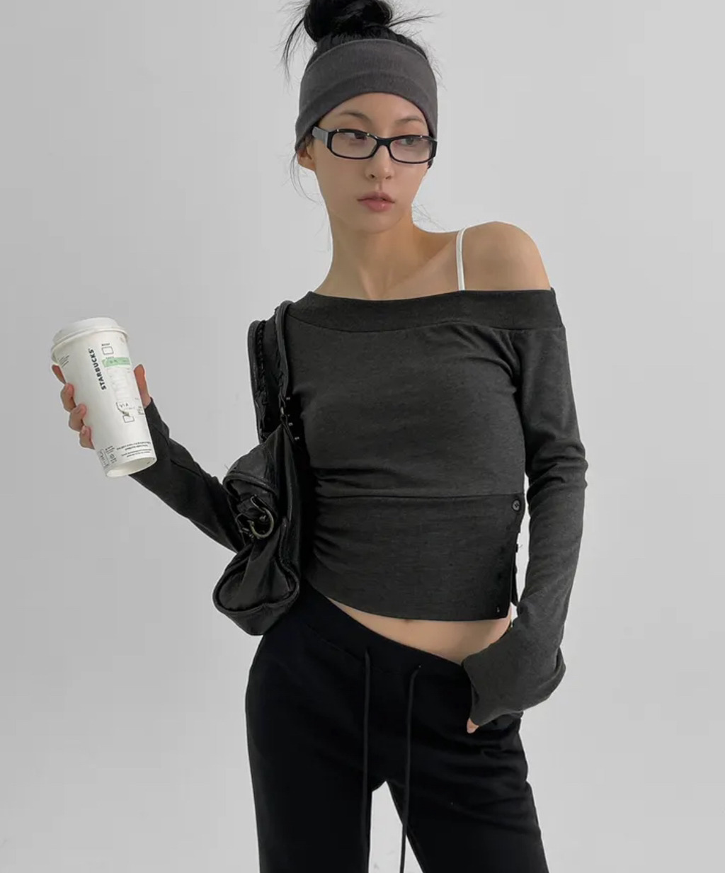 🤍[4천장판매] 왓쿠 슬릿 버튼 언발 오프숄더
