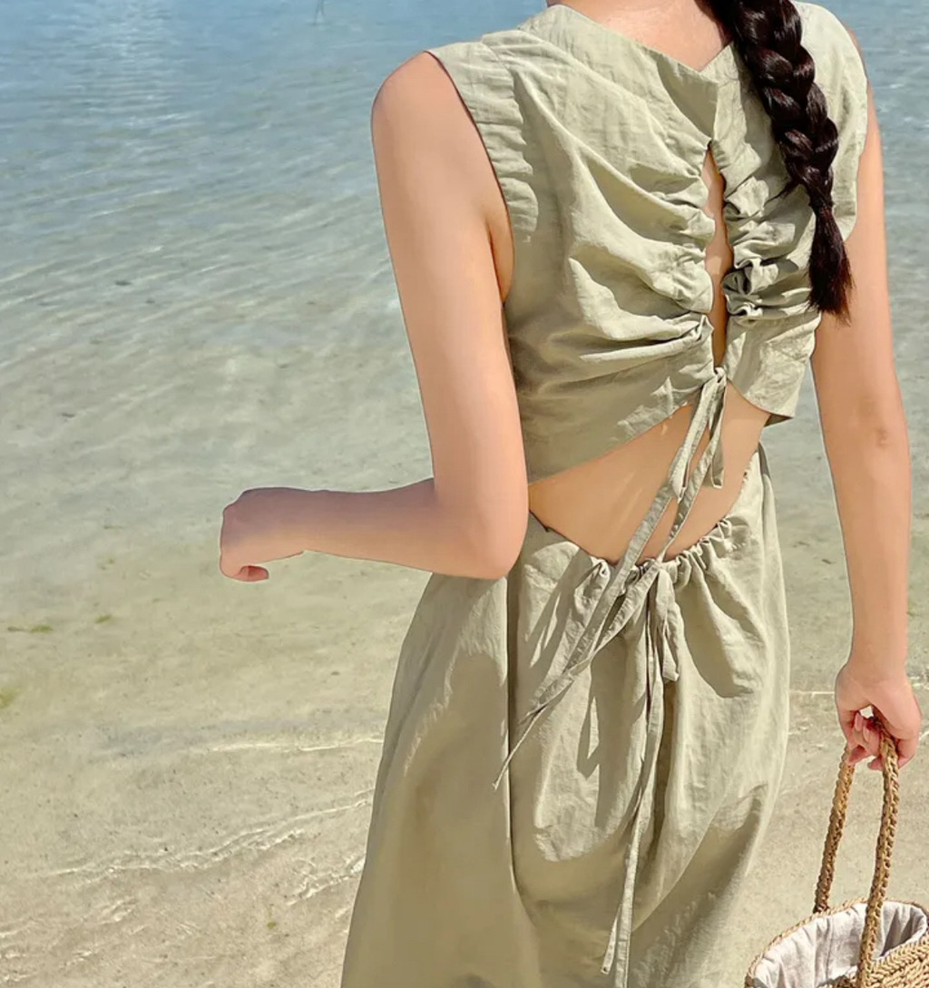🤍[단독][자체제작/15만장돌파!/뉴컬러추가!/S-XL/휴양지룩🌴]#여름💙 레이니 백 홀 트임 아노락 롱 원피스 (직잭10주년/휴양지룩/여름원피스/아노락원피스/트임원피스)