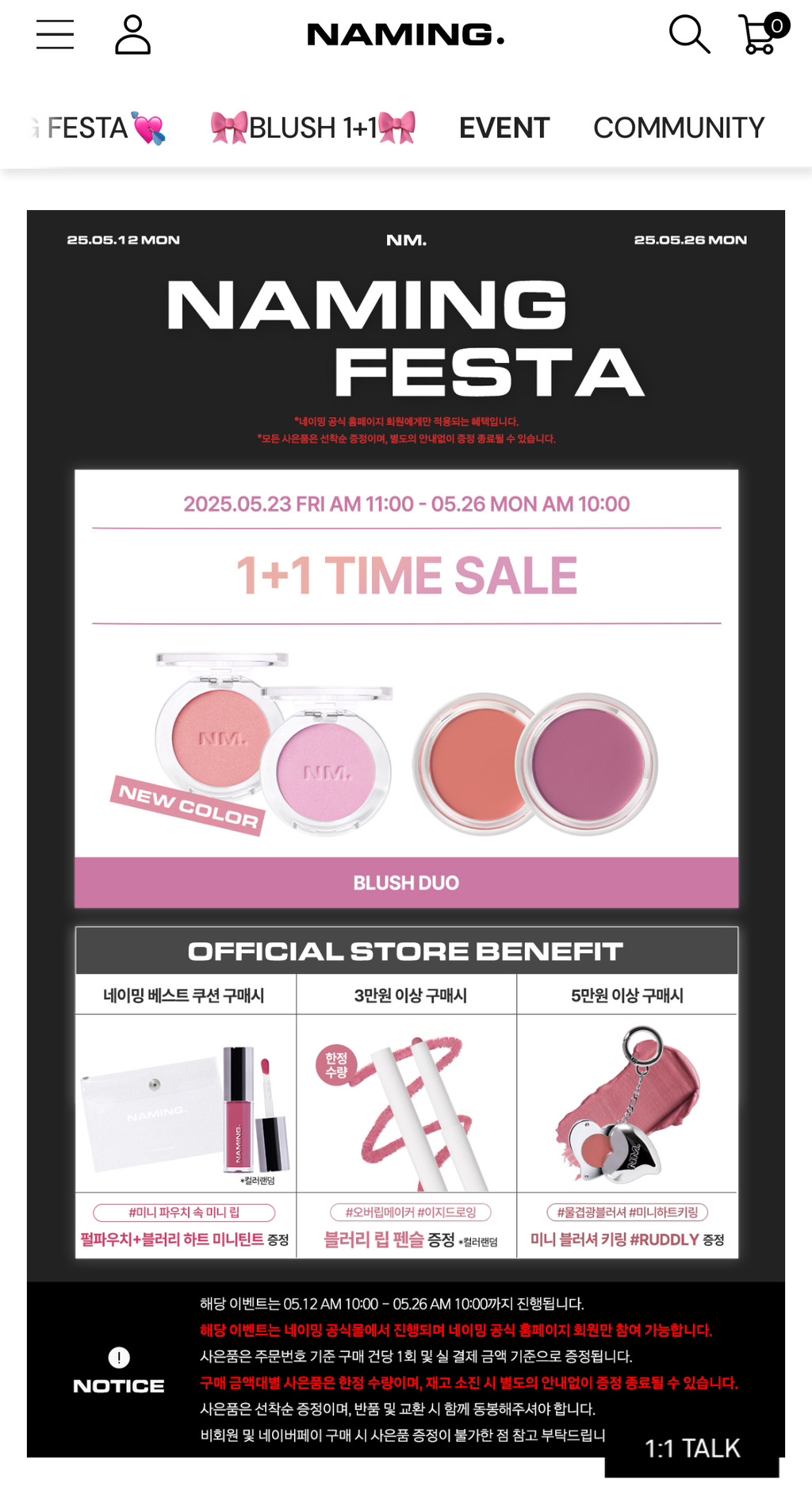🎠네이밍 페스타 블러셔 1+1 EVENT✔ 이벤트 기간: 5/23(금) ~ 5/26(월) 11:00