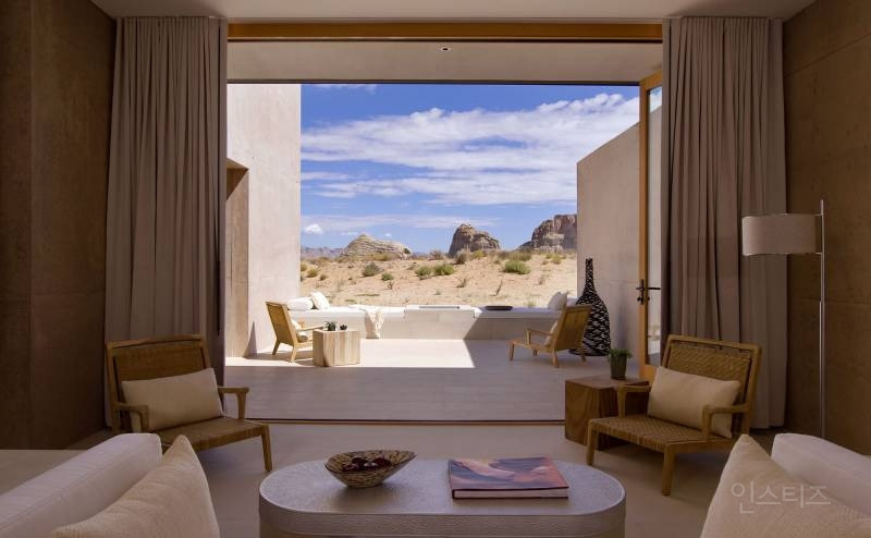 아만은 스위스에 본사를 둔 럭셔리 리조트 브랜드로 세계 각지에 체인이 있음. 제니가 간 곳은 미국 유타주에 있는 아만기리⬇️ 아만기리 호텔 공홈사진(사막 한가운데 있는 5성급호텔)
