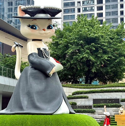 제니 멧갈라 의상에서 영감받았다는 중국 고양이거리 설치물