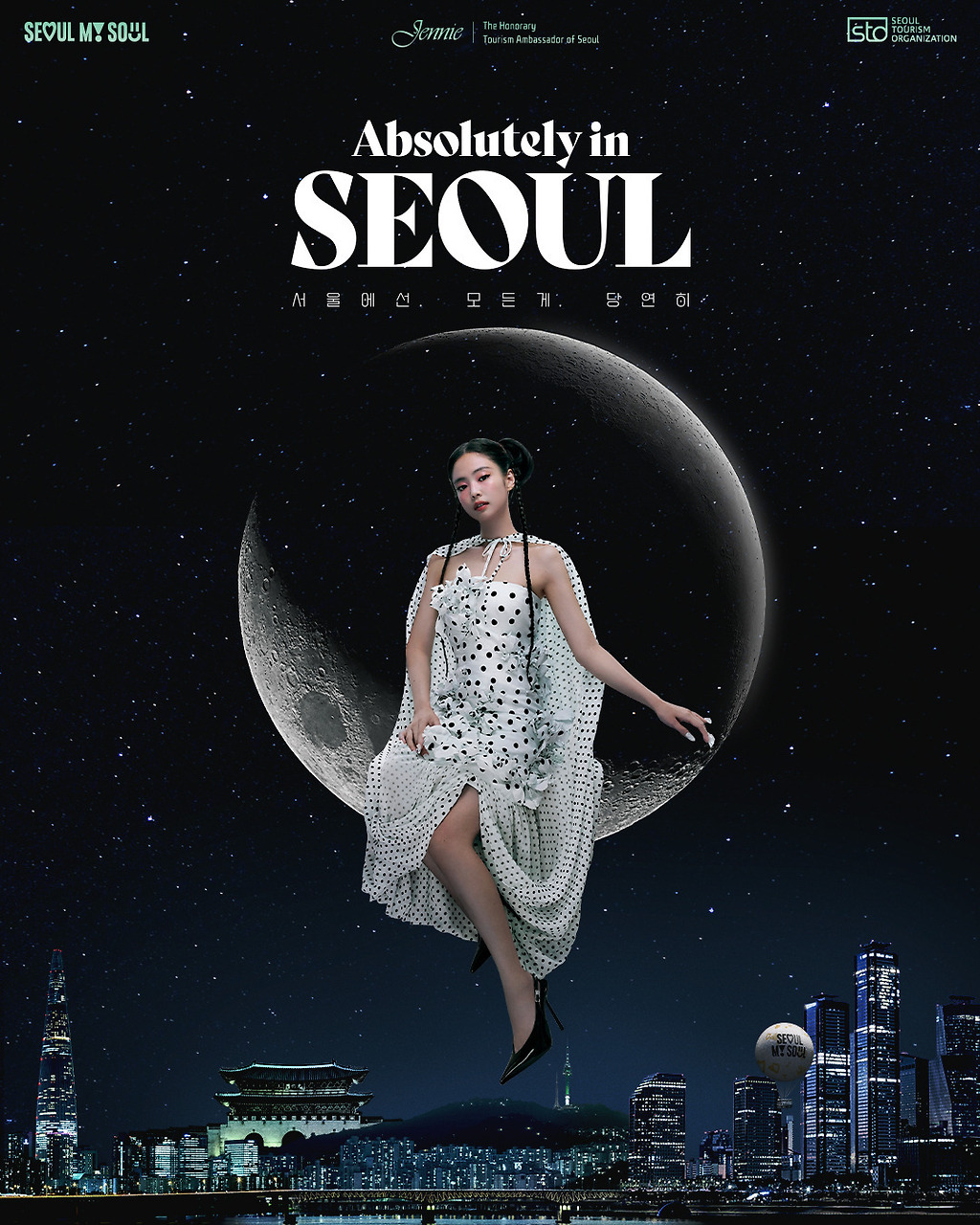 제니는 ‘서울에선. 모든 게. 당연히(Absolutely in Seoul)’라는 메시지로 서울을 직접적으로 알린다.