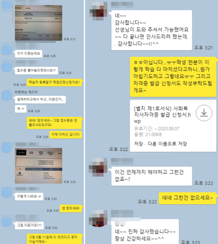 덕분에 대학을 다시 가지 않아도 한국어교원 자격증 루트를 완성할 수 있습니다.