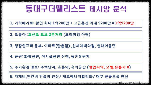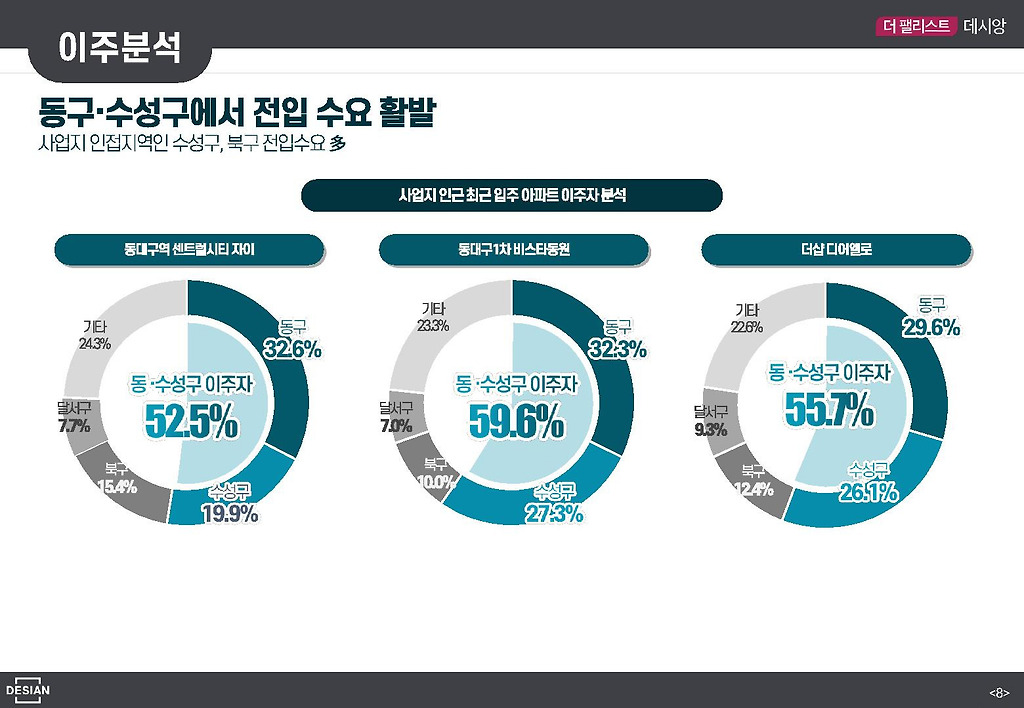 동구는 달성군 다음으로 미분양아파트 최소지역으로 공급대비 분양 인기도가 높은 지역으로 향후에도 그 가치가 유지될 수 있는 지역으로 보여 집니다.