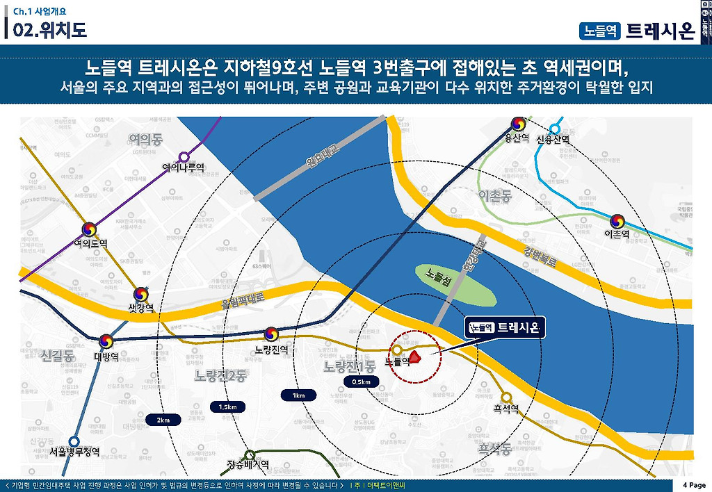 지하철 9호선 노들역 3번 출구와 1분 거리인 초역세권으로 한강을 정면으로 바라보면서 강남권을 원스톱으로 접근하는 탁월한 교통망과 주거환경을 지닌 노들역 트레시온 민간임대아파트를 살펴보는 시간입니다.