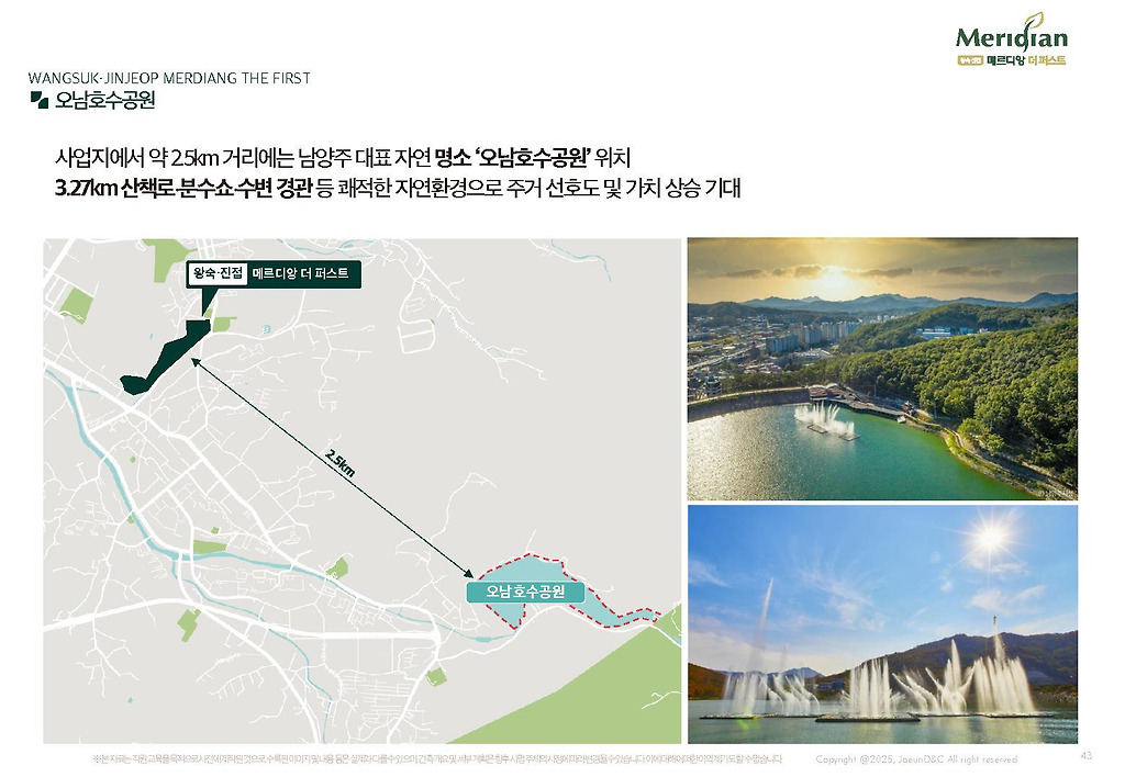 자연친화입지로 형성되는 안정적 주거지- 오남저수지 인접: 쾌적한 수변공원 및산책로 확보, 자연친화입지 저밀도 주거지: 조용하고안정적인 주거밀집지형 성- 진접·왕숙지구 생활권 공유