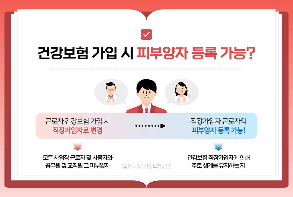 또한 건강보험 가입 시 ‘피부양자’ 등록이 가능합니다!