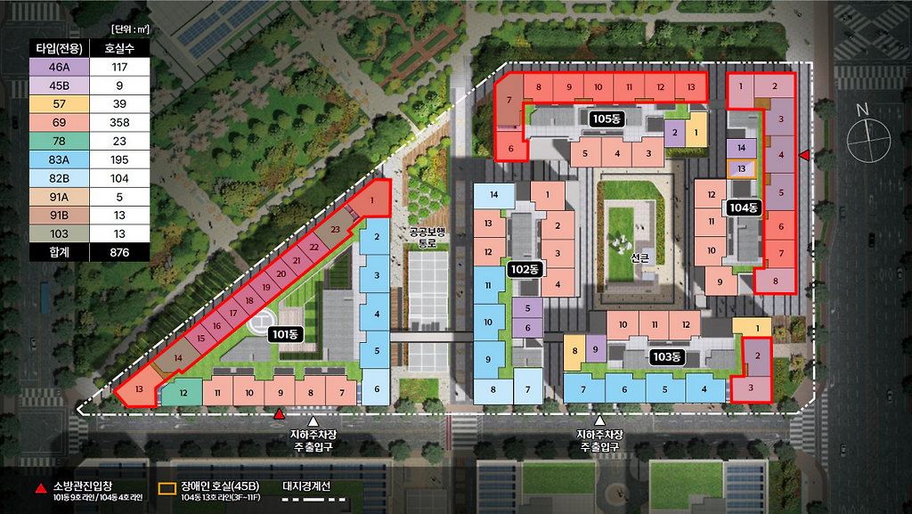 마곡 롯데캐슬 르웨스트는 총 876실, 5개 동으로 이루어진 대단지입니다. 가장 주목할 점은 전체 호실의 82.1%(537실)가 방 3개, 욕실 2개를 갖춘 3룸 구조로 설계되었다는 것입니다. 이는 1인 가구 중심의 오피스텔이 아닌, 3~4인 가구까지 넉넉하게 거주할 수 있는 완벽한 '아파트 대체재'임을 의미합니다.