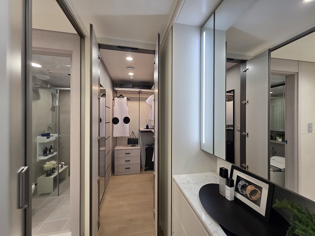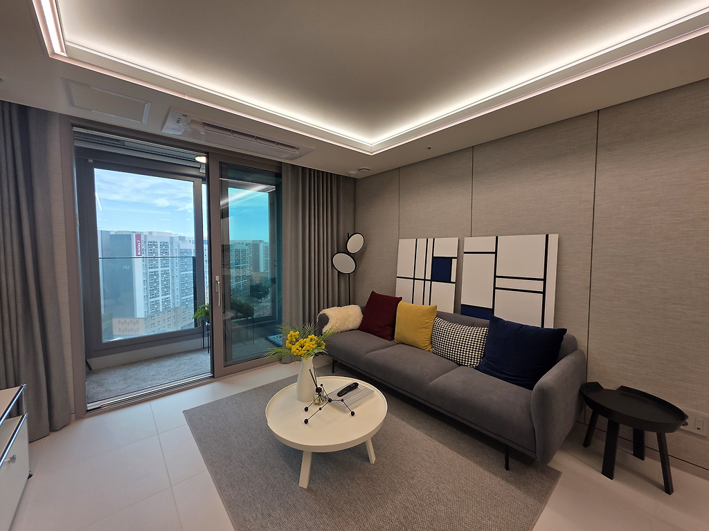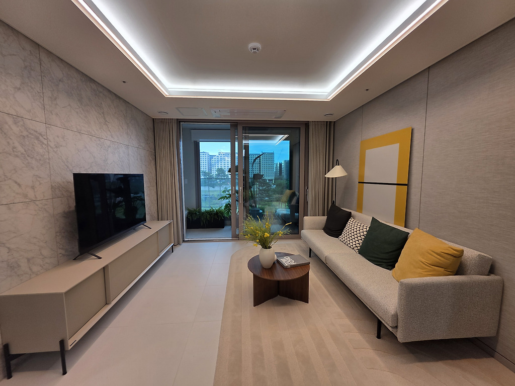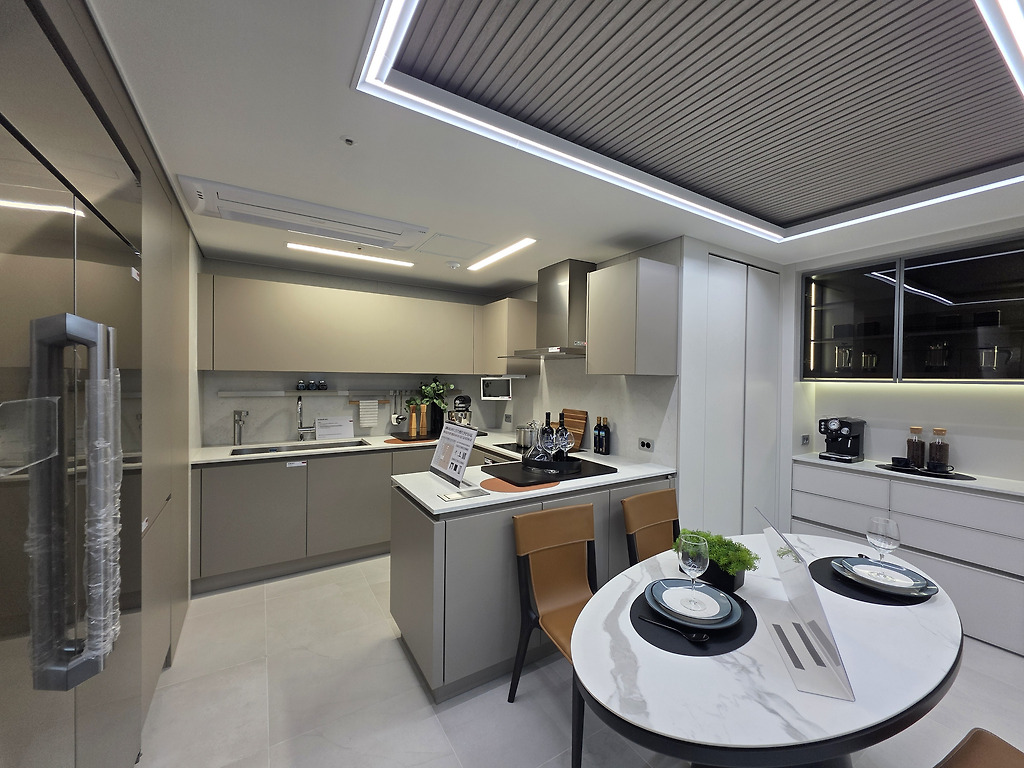 풀퍼니시드 시스템: 빌트인 냉장고, 드럼 세탁기, 드럼 건조기, 천장형 팬코일유닛(전실), 빌트인 정수기, 음식물 처리기 등 생활에 필요한 모든 가전이 기본으로 제공됩니다.