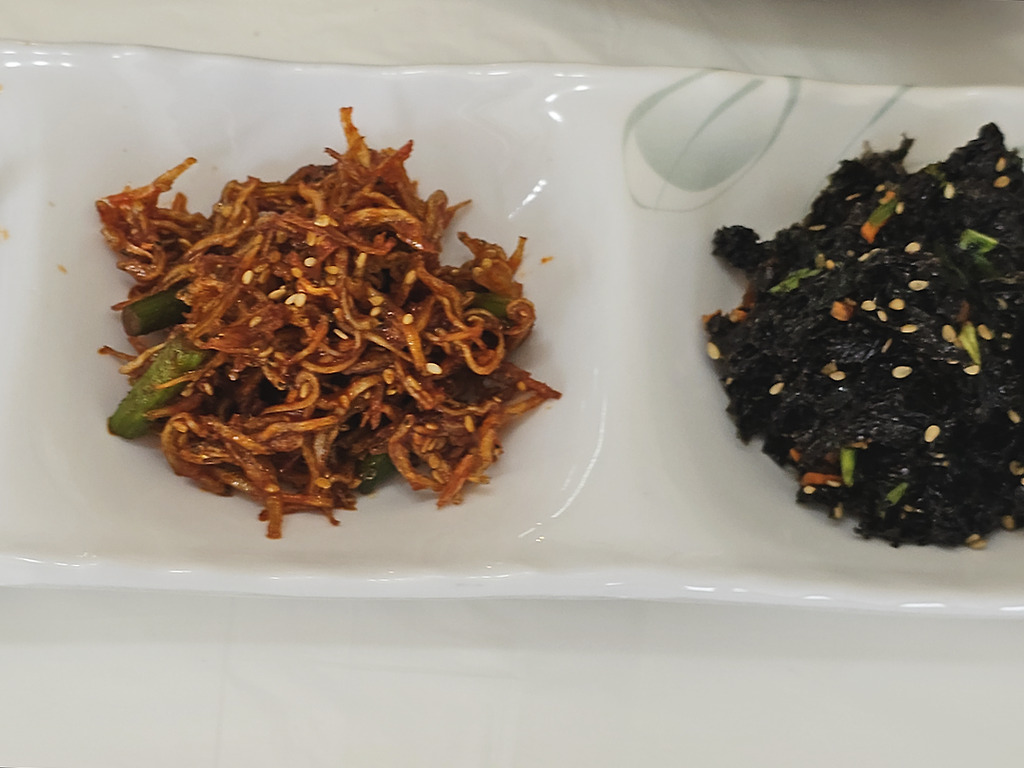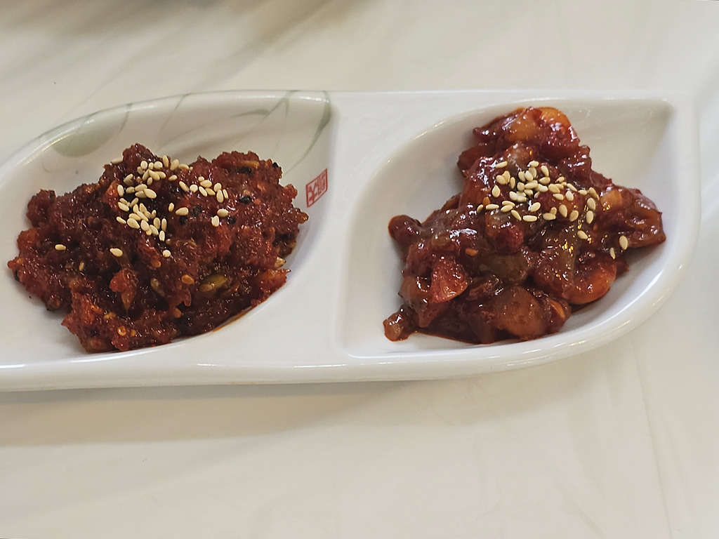메인 요리들 사이를 꽉 채운 15가지가 넘는 정갈한 밑반찬들도 빼놓을 수 없죠. 여수의 명물 갓김치부터 각종 나물, 젓갈까지 하나하나 정성이 가득했습니다.