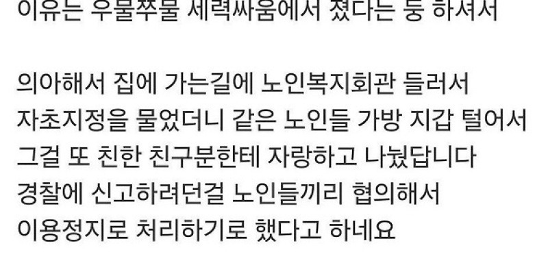 시어머니가 노인복지회관의 이용을 정지 당한 이유