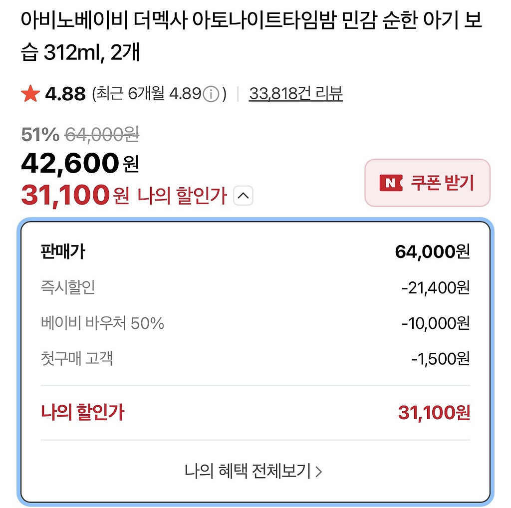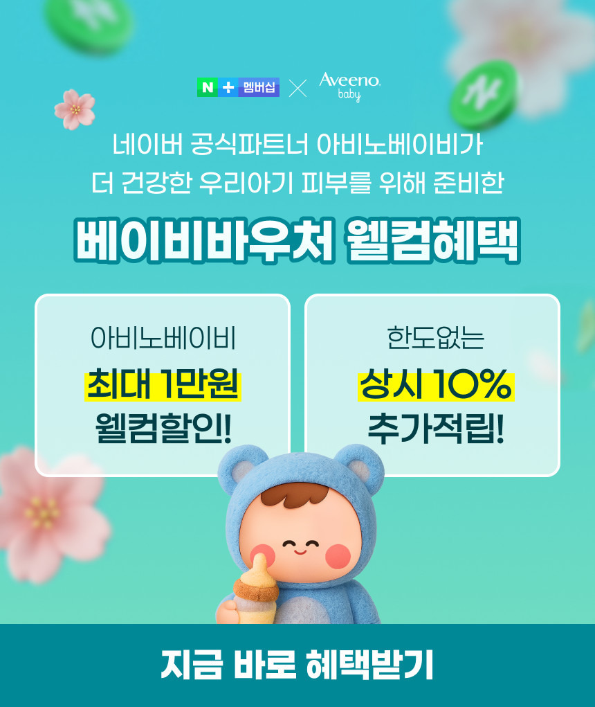 네이버 멤버쉽 회원이고, 베이비바우처 꼭 등록해서 50% 할인쿠폰 받으시고,